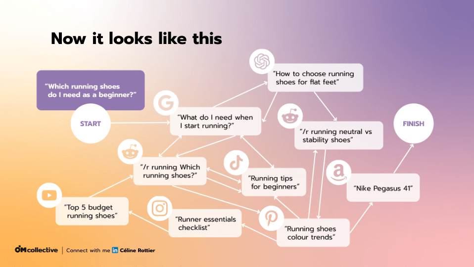We zien een duidelijke verschuiving: AI wordt een volwaardige navigatielaag in de customer journey. Vooral in de oriëntatiefase neemt AI-touchpoints over die vroeger via traditionele Google-resultaten, blogs of websites liepen. Denk bijvoorbeeld aan travel: AI plant routes, filtert opties en geeft persoonlijke suggesties.